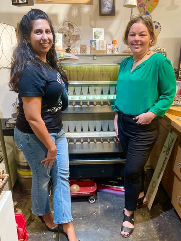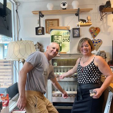 ArtdropDTO began as a brainstorm between Orlando artists and friends Cherrah Johnson and Geoffrey Gregory, who have been designing & building displays together for a decade for Beaux Studios' boutiques, located around Central Florida. Geoffrey is an engineer and fabricator, known to be able to mix art and engineering to support the fine artists he works with. During a design meeting in April, while sitting in front of the vintage vending machine, we talked about our friend Katie Willoughby -Root, a local artist who had just put a small vending machine inside local franchise Kelly's Homemade, on Corinne Drive. Musing about how to connect more buyers to their artist friends, they realized they could use the vintage cigarette vending machine that Geoff had already been refurbishing!